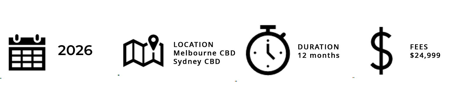 The program is delivered 3 days per week at a Melbourne CBD- Docklands venue, delivered in 4 blocks over 12-month period or “gap year”.